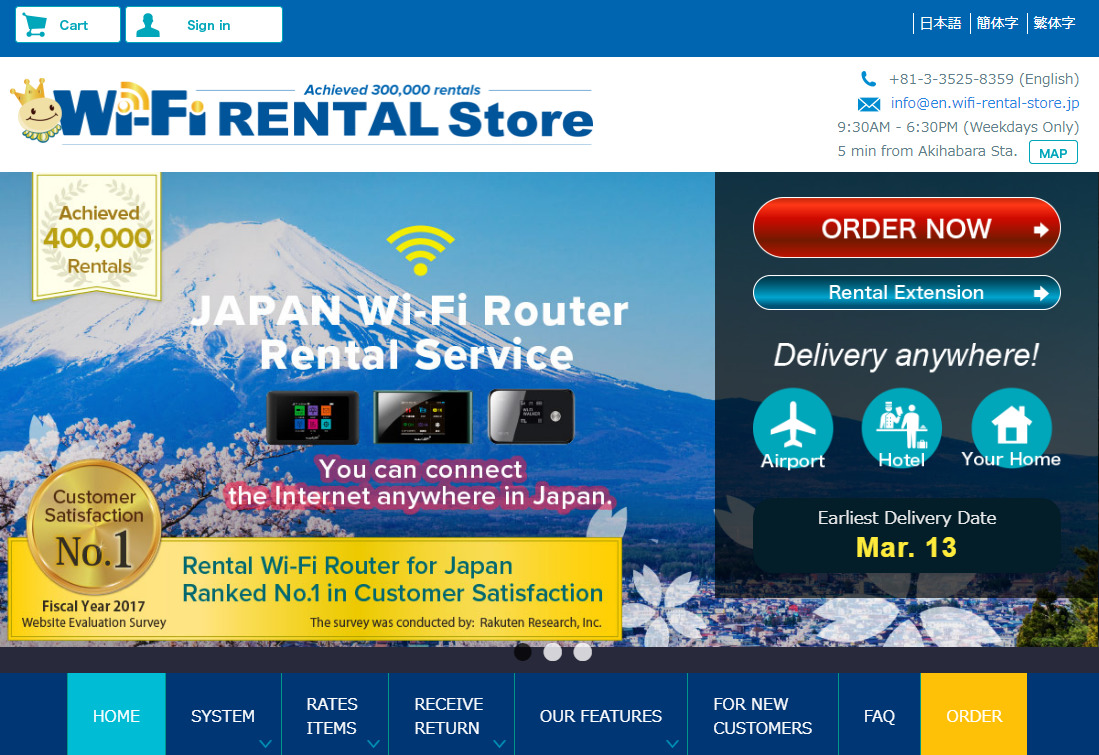 We are chosen by many of those who rent Wi-Fi routers in Japan, helping us to serve more than 400,000 rentals as of September 2017.